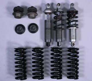 Diverse Teile zum Thema Fahrwerk wie Federbeine, einzelne neue Federn und weitere Kleinteile im Gesamtpaket: