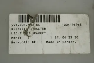 Porsche 991.2 GT3 Cup Abdeckung für Kennzeichenhalter hinten 9917011158A
