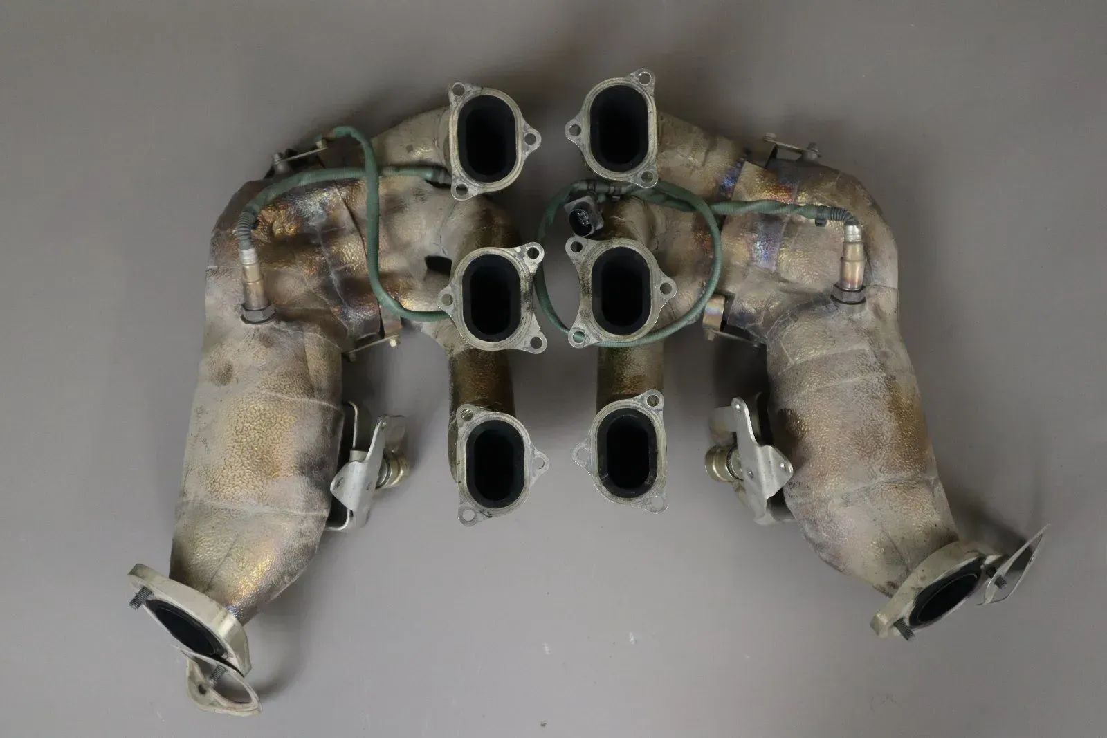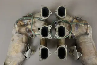 Porsche 981 Cayman GT4 Clubsport Abgaskrümmer mit Katalysator links und rechts 9811132118C 9811132128C Zustand gebraucht aber sehr gut