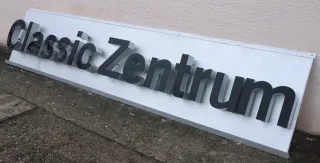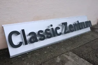 Porsche Werkstattschild CLASSIC ZENTRUM beleuchtet Chromeinfassung 370x85cm